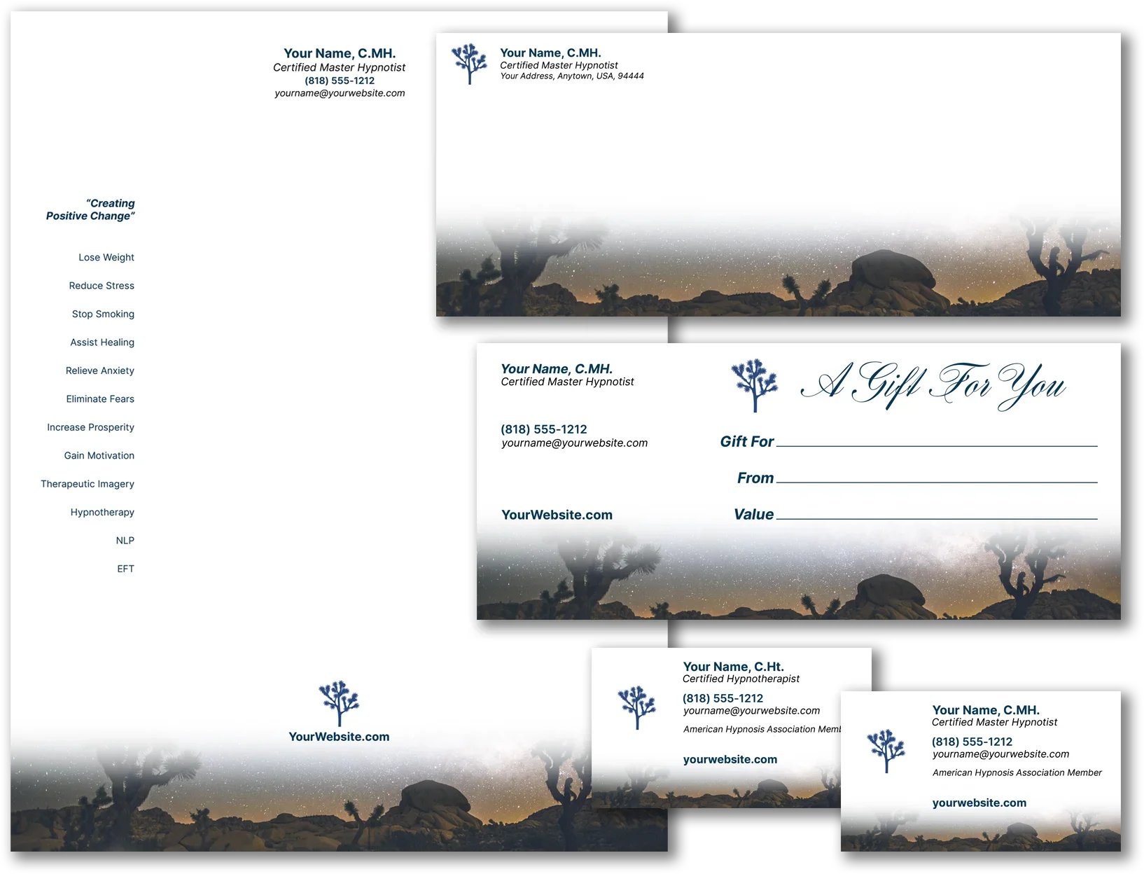 You need a name, a logo, a website, business cards, matching letterhead, envelopes and gift certificates. Yikes, that sounds like a lot, after all you’re training to be a Hypnotherapist, not a web designer or graphic artist, computer person or have a lot of money to spend.